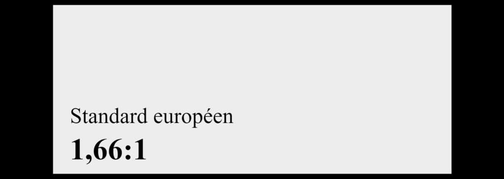 Parallèlement au format 1:85:1, les Européens développèrent leur propre standard, le 1.66:1, qui fut utilisé notamment pour la majorité des films de la Nouvelle Vague mais qui n’est quasiment plus employé aujourd’hui.