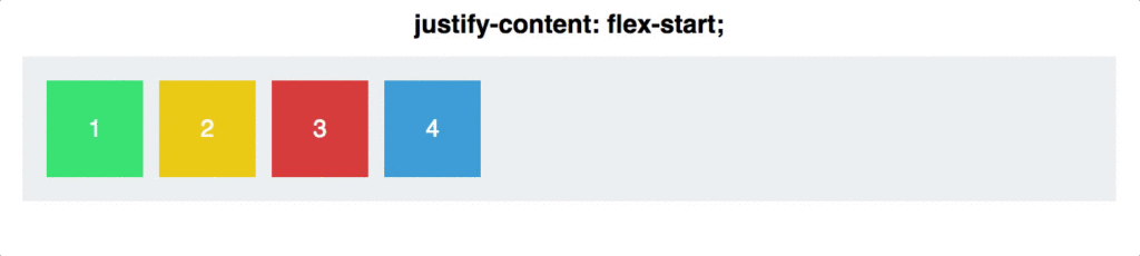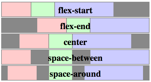 /* CSS justify-content: flex-start | flex-end | center | space-between | space-around */
