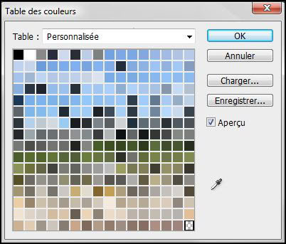 Vous avez en plus la possibilité de modifier la palette de couleurs à votre guise. Pour cela, une fois le mode couleurs “couleurs indexées” sélectionné, retourner dans Menu > Image > Mode et cliquez tout en bas sur “tables des couleurs”.